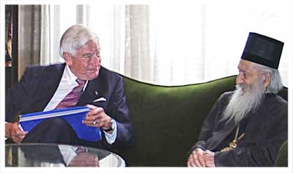 Његова Светост Патријарх српски Г. Павле примио је данас, заједно са Високопреосвећеним Митрополитом дабробосанским Г. Николајем, у Патријаршијском двору, у Београду, др Кристијана Шварц-Шилинга, Високог представника Међународне заједнице у Сарајеву. Приликом речи добродошлице, Патријарх српски Г. Павле је истакао да је рођен, да се школовао и да је службовао у мултиетничкој средини. “У вишенационалним срединама има људских проблема, који се решавају веома брзо и лако ако се сви понашају као што приличи свакоме човеку.” Свјетјејши Патријарх је нагласио да је неопходно да, у тешким ситуацијама које би требало да се решавају, односи према свим народима буду исти, јер сви људи на свету имају права на миран и достојанствен живот. Патријарх је нагласио да се нада да ће сви проблеми бити превазиђени у интересу мира, слободе и поштовања људских права. Високи гост из Сарајева је заблагодарио Патријарху што је издвојио време за овај састанак. Др Шварц-Шилинг је истакао да је за четири месеца колико је на месту Високог представника Међународне заједнице у Сарајеву, тежио да истакне важност Цркава и верских заједница у мултиетничком друштву, а посебно важност пажљивог и недвосмисленог коришћења медија. У том периоду он се сусрео са свим поглаварима Цркава и верских заједница у Босни и Херцеговини. “Сви смо ми људи грешни и правимо грешке. Међутим, поглавари Цркава и верских заједница су дужни да свој верни народ воде у правом смеру. Зато Црква има кључну улогу у решавању свих проблема, јер треба да својом мисијом посведочи морал, правду и мир. Пошто је Босна и Херцеговина микрокосмос европске историје, требало би да сви људи који живе у њој својим трудом и хтењем постану део Европе.” По питању враћања црквене имовине, а посебно зграде у којој би био смештен Православни богословски факултет Светог Василија Острошког у Сарајеву, др Шварц-Шилинг је истакао да у Босни и Херцеговини није донет закон о реституцији црквене имовине, али да они посебно настоје да се ова зграда која је била у власништву Митрополије дабробосанске врати свом власнику, на начин који би задовољио све. Његова Светост Патријарх српски Г. Павле је на крају разговора истакао да су правда и слобода заједнички интерес свих народа и свих Цркава и верских заједница. У том правцу верски поглавари треба да делају, јер смо сви ми пореклом од Адама и Еве и треба да заједно живимо у миру. “Зато треба да будемо на истом путу, како Свети апостол Павле каже, да будемо Божји сарадници, јер ако се ми потрудимо и Бог ће нам помоћи.” После посете Српској Патријаршији, др Кристијан Шварц-Шилинг, Високи представник Међународне заједнице у Сарајеву, посетио је Саборну цркву у Београду. Извор: Информативна служба СПЦ ---------------------------------------------------------