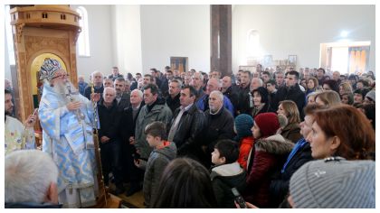 У Евхаристијском сабрању одслужисмо службу Божију у храму Успења Пресвете Богородице, а потом у присуству великог броја наших вјерника, извршисмо велико освећење воде.