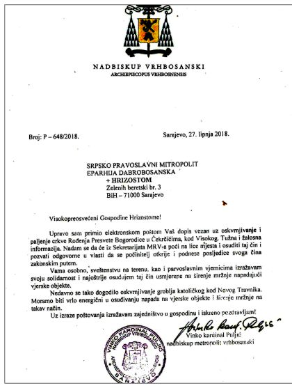 Данас је у сриједу, 3. јануара 2018. године, Његово Високопреосвештенство г.г. Хризостом, митрополит дабро-босански имао сусрет и разговор са Министром у Вијећу министара БиХ-не Господином Мирком Шаровићем. У врло пријатном и срдачном сусрету Господин Шаровић је извјестио Високопреосвећеног митрополита г. Хризостома о резултатима вођених активности око пројекта санације и реконструкције зграде Митрополије у Сарајеву.