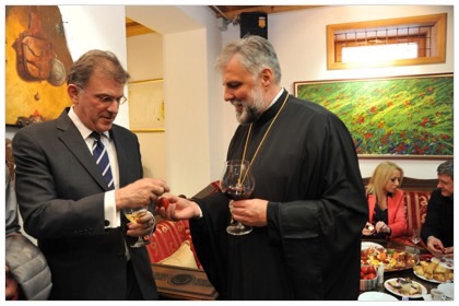 18.12.2017. КОМАДАНТ ЕУФОР-а НА АУДИЈЕНЦИЈИ КОД Данас у Понедјељак, 18. децембра 2017. године Његово Високопреосвештенство Господин Хризостом, митрополит Дабро-босански примо је у аудијенцију Господина генералмајора Антона Валднера, комаданта ЕУФОР-а у БиХ-ни. Дочекавши восоког госта Високопресвећени изказао му је добродошлицу и упознао га са историјатом Митрополије дабро-босанске. 18.12.2017. МИТРОПОЛИТ ХРИЗОСТОМ У ВОЈКОВИЋИМА У трећу недјељу пред Божић, на празник Св.Јована Дамаскина и Св.великомученице Варваре, и празник којим наша Света Црква почиње прославу и претпразништво Христовог рођења-Дјетињце, 17. децембра 2017. године, Његово Високопреосвештенство, Митрополит дабро-босански Г.Г. Хризостом, служио је Свету архијерејску литургију у храму Св. свештеномученика Петра у Војковићима - Источна Илиџа. Високопреосвећеном Митрополиту саслуживали су свештеници: протојереј-ставрофор др.Ранко Билинац, протојереј Милорад Вујић, протојереј Зоран Калајџић, јереј Бошко Тошовић, јереј Бојан Зекић и јереј Немања Ђуреиновић и ђакони: Будимир Гардовић и Владимир Рајак. 18.12.2017. ПРЕДАВАЊЕ МИТРОПОЛИТА ХРИЗОСТОМА У АНДРИЋГРАДУ