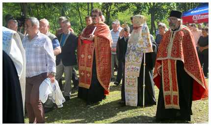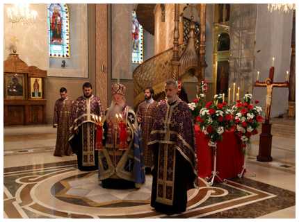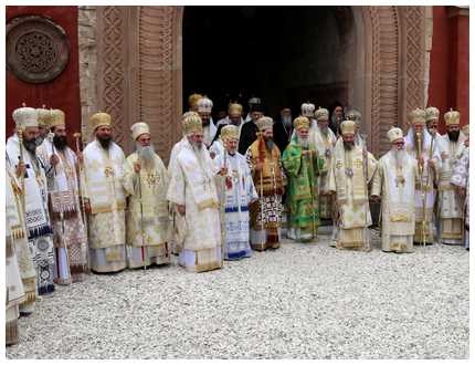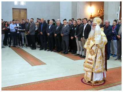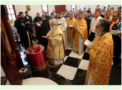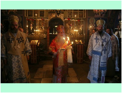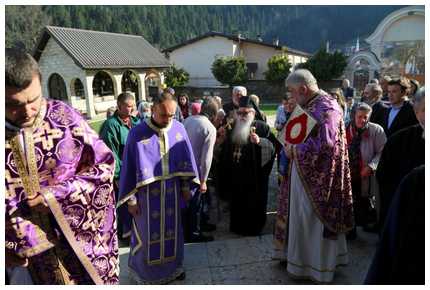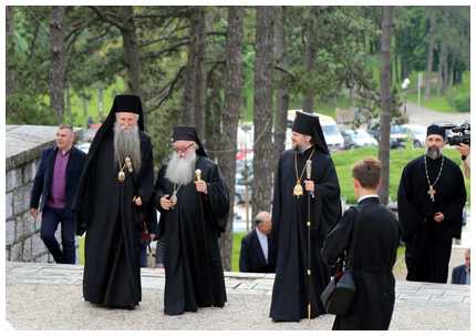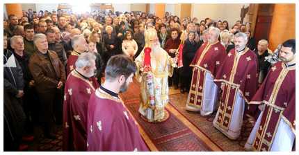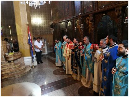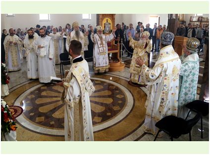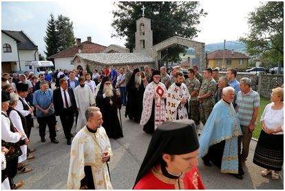 Свету службу Божију служио је Његово високопреосвештенство Архиепископ цетињски Митрополит црногорско-приморски г. Амфилохије са Високопреосвећеним Архиепископом сарајевским и Митрополитом дабробосанским Хризостом и Преосвећеном господом епископима: милешевским Атанасијем, полошко-кумановским Јоакимом, рашко-призренским и косовско-метохијским Теодосијем, бихаћко-петровачким Сергијом, буеносајрески и јужно-централноамеричким Кирилом, захумско-херцеговачким Димитријем и умировљеним захумско-херцеговачким Атанасијем.