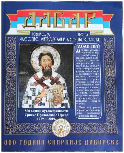 ПОВОДОМ 800 ГОДИНА СРПСКЕ ПРАВОСЛАВНЕ ЦРКВЕ И КРЕИРАЊА ЕПАРХИЈЕ ДАБАРСКЕ
