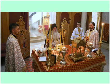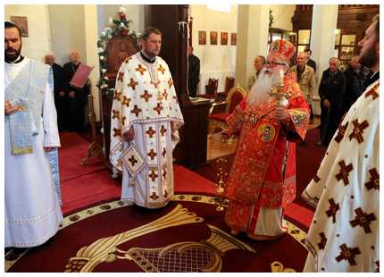 Данас, 9/22. децембра 2019. године, а у 27. Недјељу по Духовима у којој смо прославили успомену на Свету Ану, мајку Пресвете Богородице, - недјељу која је у нашој црквеној традици посвећена дјеци - детинцима Његово Високопреосвештенство Господин Хризостом служио је свету архијерејску литургију у саборној цркви у Сарајеву, а уз саслужење протојереја-ставрофора проф. др. Владимира Ступара, јереја Немање Ђуреиновића и ђакона Будимира Гардовића.