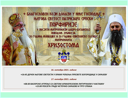 Поводом почетка божићњег поста и окончања хорског фестивала одржаног 26. и 27. новембра текуће 2021. године, данас је у Сарајеву, у саборној цркви Рођења Пресвете Богородице, Његово Високопреосвештенство митрополит дабробосански Господин Хризостом служио Свету архијерејску литургију и проповиједао ријеч божију.