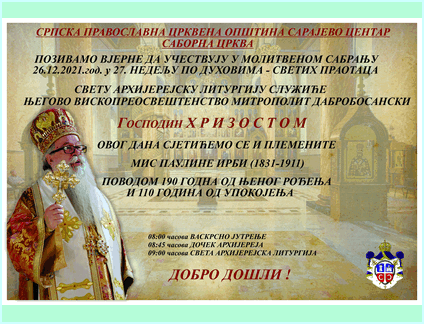 Данас у недељу светих праотаца, 26 (13). децембра 2021. године Његово Високопреосвештенство митрополит дабробосански Господин Хризостом служио је свету архијерејску литургију у саборном храму Рођења Пресвете Богородице у Сарајеву, са почетком у 09:00 часова.