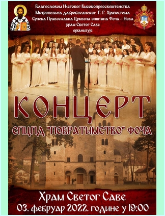 Као и претходних тако се и ове 2022. године благости Господње, на празник нашег великог Светитеља Саву, 27. јануара, велики број вјерника сабрао на молитвено сабрање у храму Светог Саве у Фочи да величанствено и торжествено прослави овај велики празник нашег првог просвјетитеља и учитеља. У овом велељепном храму у центру Фоче, Његово Високопреосвештенство митрополит дабробосански Господин Хризостом служио је свету архијерејску литургију и проповиједао ријеч божију, са почетком у 09:00 часова.