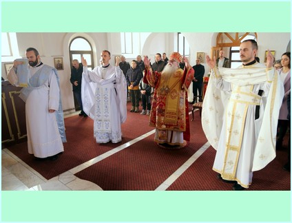 Свету архијерејску литургију са почетком у 09:00 часова служио је Високопреосвећени митрополит дабробосански Господин Хризостом, а уз саслужење протојереја-ставрофора: Јадрана Даниловића и Чедомира Ђелме, протојереја Милорада Милинковића, јереја Немање Лакића и ђакона Будимира Гардовића.