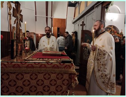 На Бадње вече у храму Светог великомученика Георгија служена је вечерња служба уз налагање бадњака, коју је служио протонамесник Бојан Зекић.