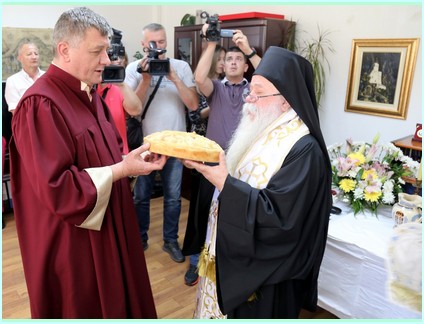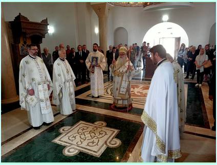 Високопреосвећени митрополит Господин Хризостом пожелио је добродошлицу госпођи Карић, те ју је упознао са историјским развојем митрополије Дабро-босанске и тренутним стањем у митрополији.