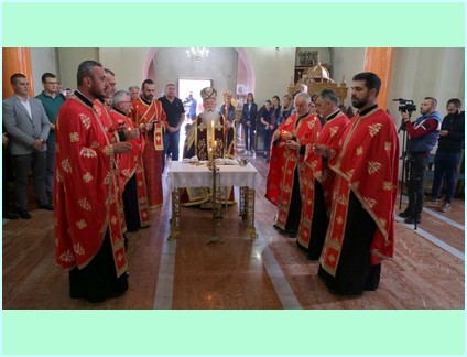 Свету Литургију предводио је јереј Ранко Ковач уз саслуживање протојереја-ставрофора Ненада Тупеше, редовног професора ПБФ-а Светог Василија Острошког у Фочи, јереја Душана Андрића, старјешине храма Светог Саве, јереја Марка Јаковљевића, јереја Стефана Андрића и јереја Синише Божића.