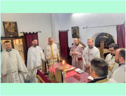 Данас, 29. новембра 2022. године, на дан успомене Светог свештеномученика Момчила Челебићког, којег часне мошти почивају у храму Светих Василија Острошког и Петра Дабробосанског у Фочи, свету литургију служио је јереј Ранко Ковач, професор приправник у Богословији ''Свети Петар Дабробосански'' у Фочи. Светој литургији присуствовао је Високопреосвећени господин Хризостом, митрополит дабробосански. Након свете литургије благословљено је славско кољиво, славски колач са вином. Славски колач преломили су служашчи јереј Ранко Ковач и Високопреосвећени митрополит Хризостом.
