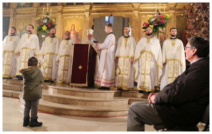У име свих Вас сабраних на овом светом литургијском и празничном сабрању, браћо и сестре, и у своје лично име и у име браће свештеника, поздрављамо Његову Узоритост Кардинала Винка Пуљића, надбискупа Врхбосанског са његовом пратњом. Ваша Узоритости, веома цијенимо и поздрављамо ваш долазак у Саборни храм наше Митрополије и ваше присуство овој светој литургији. Хоћемо да верујемо и надамо се да је наше овогодишње божићно заједничарење, прво у вашој катредали, а данас настављено ево у нашој Саборној цркви, свједочанство нашег хришћанског опредјељења да свједочимо свијету и људима Мир Божији, Љубав божанску и Добру вољу. Срдачно Вас поздрављамо Ваша Узоритости и вашу пратњу као и сву пуноту ваше врхбосанске надбискупије.