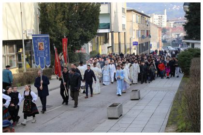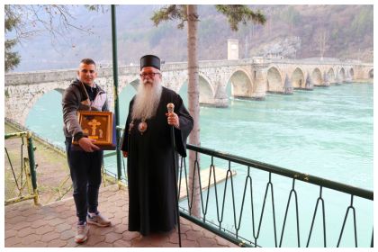 19.01.2018. АРХИЈЕРЕЈСКА ЛИТУРГИЈА И БОГОЈАВЉЕНСКО ПЛИВАЊЕ ЗА ЧАСНИ КРСТ У ВИШЕГРАДУ Његово Високопреосвештенство, митрополит дабро-босански Господин Хризостом је данас, на велики хришћански празник Богојављење, служио Архијерејску литургију у храму Светог цара Лазара у Андрићграду и извршио свети чин освећења воде. У присуству свештенства и великог броја верника Митрополит се присутнима обратио речима поуке, нагласивши да је Христовим крштењем у реци Јордану „освећена целокупна творевина Божија и поднебесје и наднебесје и земља и небо, јер Христос није дошао само да спаси човека, него да спаси читаву творевину своју која је стењала под теретом сагрешења... „ Митрополит је одликовао, нашег у Христу саслужитеља, протојереја Драгана Вукотића чином ношења напрсног крста, коме и овом приликом честитамо на достојанству певајући: „Аксиос“! После Свете литургије на којој су присуствовали и причестили се такмичари „пливања за часни крст“ и велики број верника, у свечаној литији кроз центар града Митрополит се са свештенством и верним народом упутио до ћуприје на Дрини где је благословио воду и такмичаре. Између тридесет пливача, први до крста је допливао момак из Фоче Марко Милановић коме је Митрополит уручио крст и победнички златни дукат. Организатори богојављенског пливања су Српска православна црквена општина Вишеград, уз подршку Општине Вишеград и предузећа „Хидроелектране на Дрини“. У организацији су помогли: Дом здравља Вишеград, Полицијска станица Вишеград, Цивилна заштита Вишеград, Спасилачки клуб „Волф“ из Фоче, брод „Соња“ и хотел „Андрићев конак“. Свој нашој деци која су била вредна и верницима који су узели молитвеног учешћа прослављајући саборно овај свети дан се захваљујемо и уједно свима честитамо празник уз хришћански поздрав: „Бог се јави“! протојереј Средоје Андрић Видео прилог погледајте овде: https://youtu.be/FU6WOnOV33E |