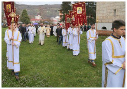 Након отслуженог вечерња и бесједе Високопреосвећеног Господина Митрополита обављен је опход врбице око светог храма. На жалост мало ложије вријеме и киша омели су одржавање валики литије кроз град Фочу.