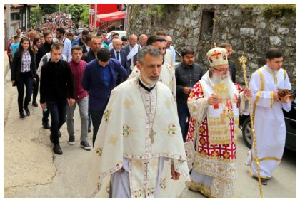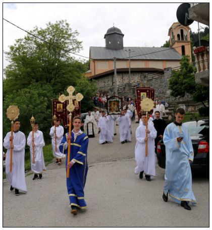 Након свете литургије, благосиљања славског кољива и ломљења славског колача, те бесејде Високопреосвећеног Господина Митрополита обављена је величанствена литија улицама Фоче од храма св. Николаја па све до Споменика погинулим борцима отаџбинско-одбрамбеног рата (1992-1995) гдје је обављен помен-парастос и гдје су запаљене свијеће за покој душа свих пострадалих