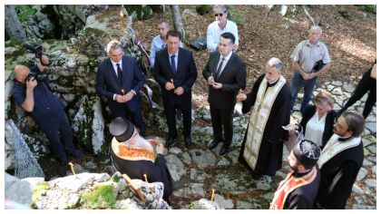 Градоначелник Господин Вуковић је заједно са својим сарадницима положио вјенац испред саме безданке и у тишини се помолио Богу и светом Петру дабробосанском.