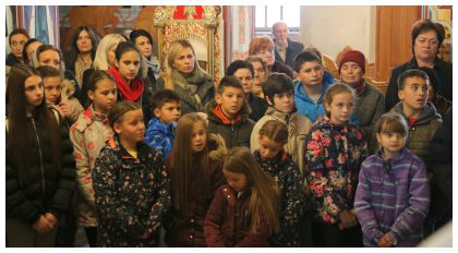 Свети храм је био испуњен вјерујућим народом, а посебну радост у срцима свих изазвала су дјеца школског узраста која су заједно молитвено учествовала на светој Литургији.