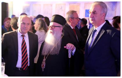 12.12.2017. МИТРОПОЛИТ ХРИЗОСТОМ НА ОБИЉЕЖАВАЊУ Данас је, 12. децембра 2017. године, у Сарајеву на Скендерији у организацији Архива БиХ-не уприличено обиљежавање 70 година постојања и рада ове значајне институције. Цијенећи велики значај који има Архив БиХ-не, а и сам заљубљеник у архив, обиљежавању је присутвовао Високопреосвећени г.г. Хризостом, митрополит дабро-босански, којег је врло срдачно дочекао и поздравио Директор Архива г. Саша Клепић. Обиљежавању овог јубилеја између осталих присутвовали су Високи преставник УН-ја у БиХ-ни г. Валентин Инцко, министар у Вијећу министара БиХ-не г. Мирко Шаровић те велики број дипломата и представника државних и културних институција. |